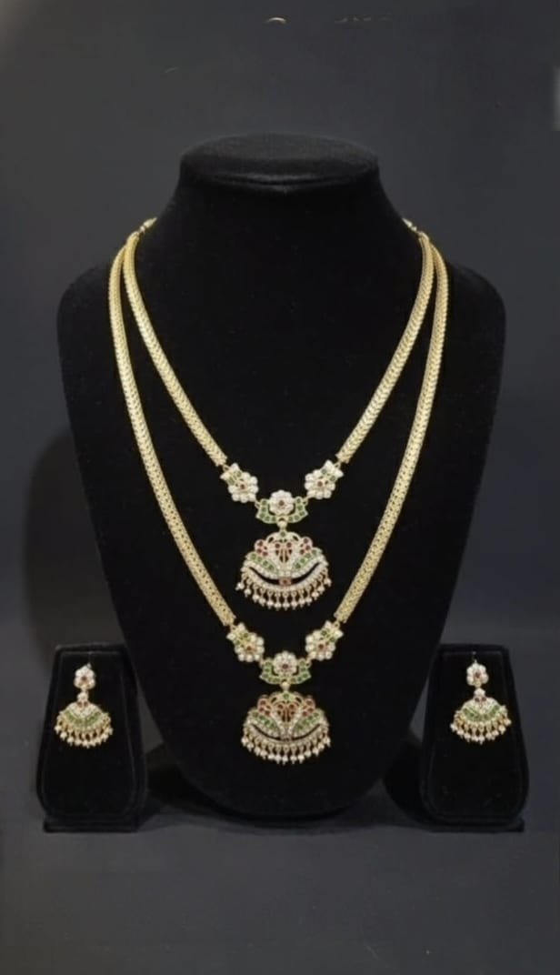 Microgold plated panchaloha set of Necklace, long haram and earrings