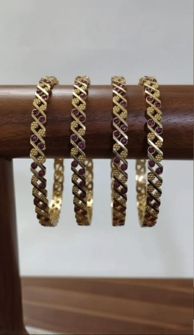 Enhance your jewelry collection with these Microgold Plated Stone Bangles – Size 2.8. Crafted with intricate design and sparkling stones, these bangles exude elegance and charm. The microgold plating gives a rich, golden shine while keeping them lightweight and comfortable for daily or special occasion wear.